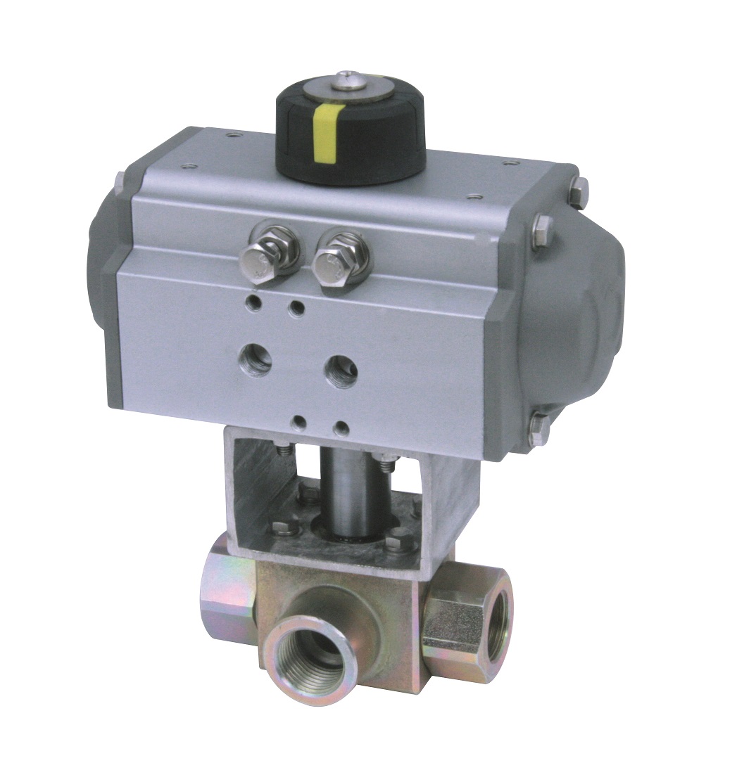 氣動三通球閥由內螺紋三通球閥和氣動執行器組成,體積小,結構簡單。分為L型、T型,能實現:換向、分流、合流、混流作用。四閥座密封三通球閥具有造型美觀、結構緊湊合理,它不僅可實現介質流向的切換,也可使三個通道相互連通,同時也可關閉任一通道,使另外兩個通道連通,靈活控制管路中介質的合流或分流。